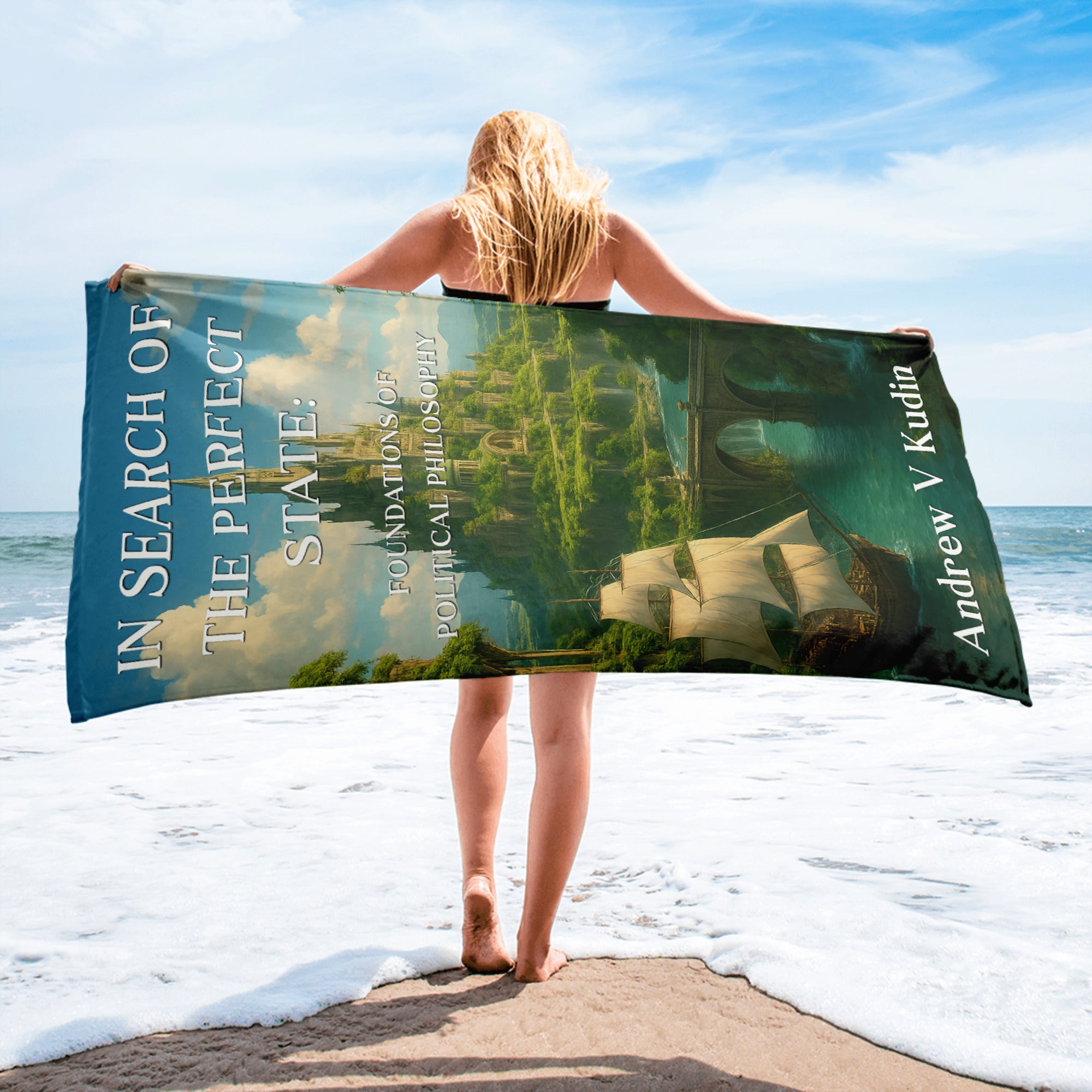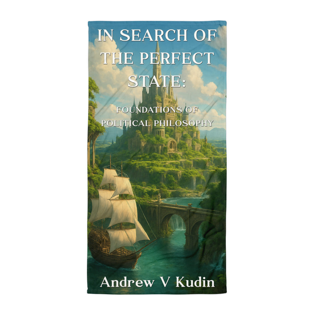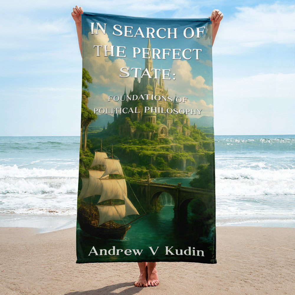 This premium beach towel carries In Search of the Perfect State beyond libraries and lecture halls — to the place where philosophy breathes freely.