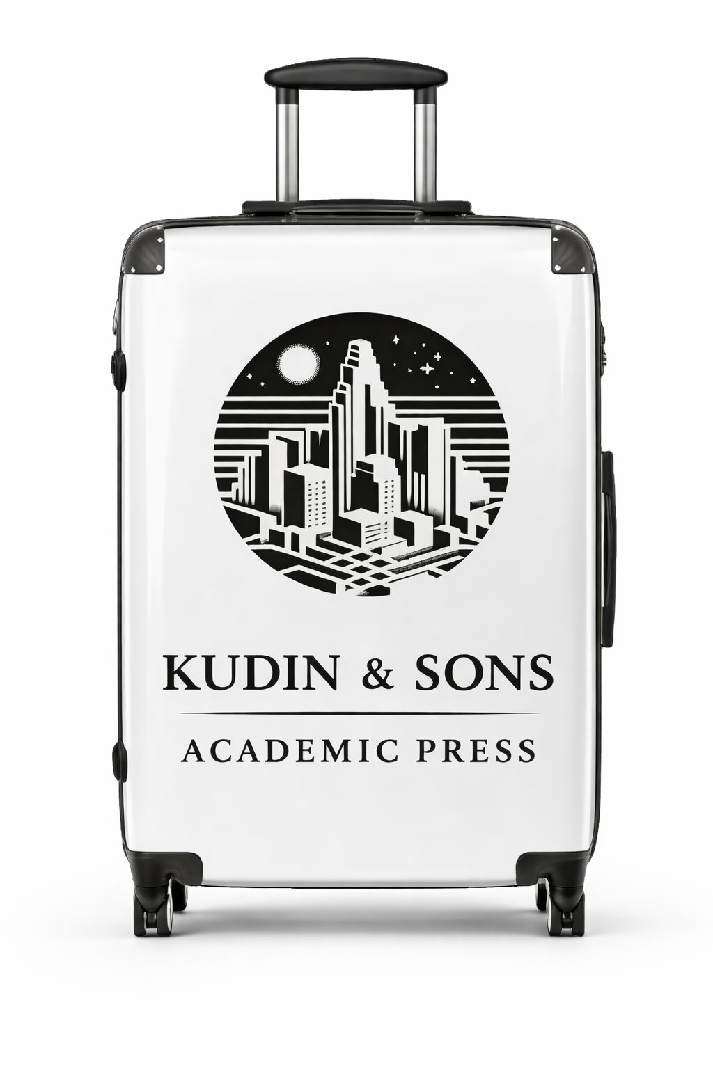 This collection features apparel and accessories inspired by Kudin & Sons Academic Press — a symbol of intellect, creativity, and timeless thought. Each piece carries the press’s signature emblem: a stylized futuristic skyline within a solid black circle, illuminated by a full moon and distant stars.