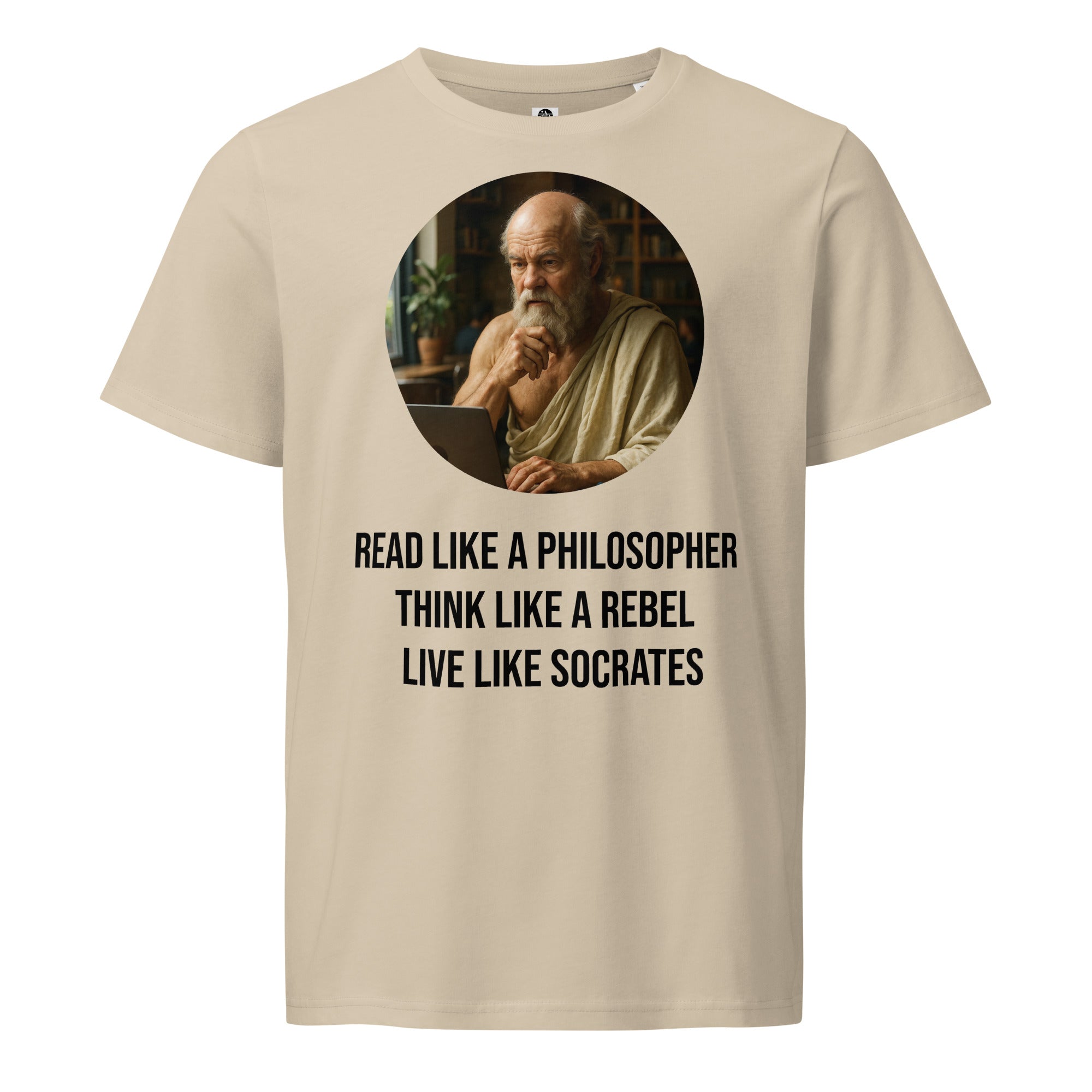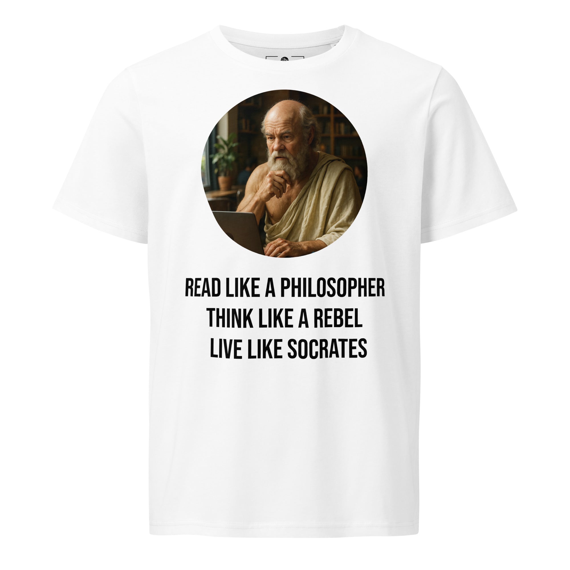 This organic T-shirt carries the fearless spirit of Socrates: calm, ironic, and endlessly curious.